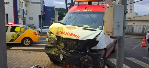 Uma ambulância do Serviço de Atendimento Móvel de Urgência (Samu) se envolveu em um acidente de trânsito no cruzamento da Rua Rio Branco com a Rua Desembargador Clotário Portugal, na região central de Apucarana. região central de Apucarana, na tarde deste sábado (7). A viatura seguia para atender uma ocorrência quando colidiu com um carro.