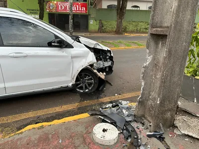 Uma mulher de 71 anos ficou ferida após atingir um poste na tarde desta segunda-feira (25) na Rua Padre Severino Cerutti, na região da Vila São José, em Apucarana (PR). A idosa teria passado mal e, por isso, perdido o controle da direção do veículo.
