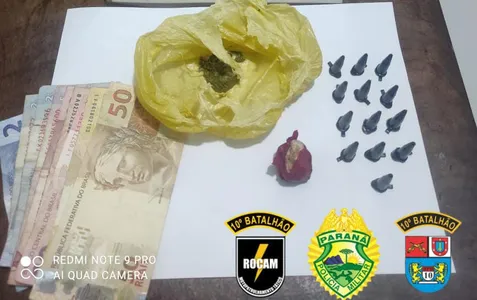 Com o jovem, os policiais encontraram 9 gramas de maconha, 13 pinos com cocaína, além de uma pedra grande de crack, que poderia render aproximadamente 90 pedras para a venda. Diante do flagrante, o adolescente foi apreendido e levado para a 17ª Subdivisão Policial de Apucarana.