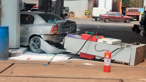 Um acidente foi registrado no fim da manhã desta segunda-feira (23), por volta das 11h45, em um posto de combustíveis situado no distrito de Aricanduva, em Arapongas, norte do Paraná. Um veículo Chevrolet Astra atingiu uma das bombas de combustíveis do estabelecimento e provocou um pequeno incêndio.