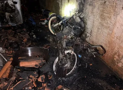 A motocicleta sofreu perda total e a estrutura da residência foi parcialmente danificada. A equipe da Defesa Civil foi acionada e conseguiu conter o incêndio antes que as chamas tomassem todo o imóvel.