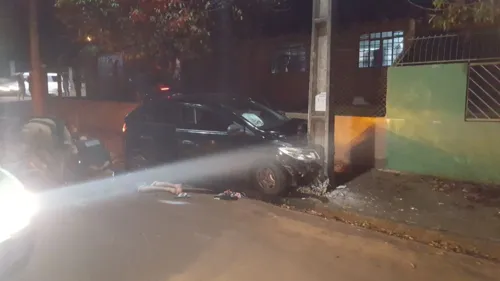 A Polícia Militar (PM) prendeu três suspeitos de assalto, após acidente de trânsito na noite de domingo (4), em Apucarana. O trio bateu um carro roubado de frente com um poste, na Rua Presbitero Benoni Rodrigues Moreira, cruzamento com a Denhei Kanashiro, no Jardim Paraiso, em Apucarana.