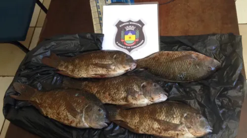 Com o trio foram apreendidos 3,810 kg de tilápia. Os cinco peixes já pescados eram escondidos pelos detidos.