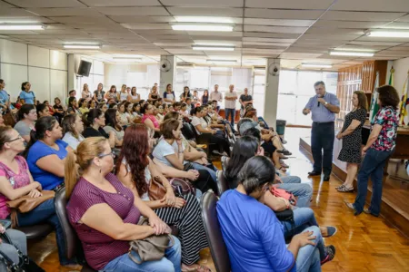 O prefeito Beto Preto e a secretária de educação Marli Fernandes receberam, ontem (5), no salão nobre da prefeitura, os 69 novos servidores contratados para reforçar as equipes das escolas e centros de educação infantil (CMEIs) da rede municipal de Apucarana.