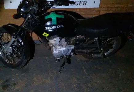 Moto furtada é recuperada pela PM durante a madrugada no Jaboti