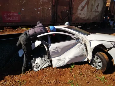 Motorista tenta desviar de acidente e tem carro atingido por trem em Apucarana