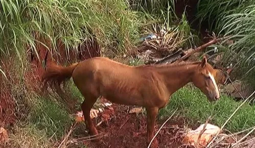 O equino foi libertado do enrosco sem maiores dificuldades e apresentava pequena lesões provocadas pelo arame farpado.