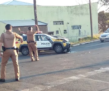 Uma viatura da Polícia Militar (PM) se envolveu em acidente com um carro, no cruzamento entre a Travessa Vitória com a Travessa Palmeira, em Apucarana.