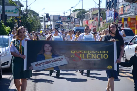 Centenas de pessoas participaram, na manhã de ontem, em Apucarana da passeata “Quebrando o Silêncio”, promovida pela Igreja Adventista do Sétimo Dia.