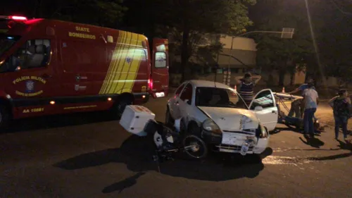 Um acidente no fim da noite de domingo (23) deixou um motociclista ferido em Apucarana. A vítima que trabalha em uma pastelaria da cidade estava a caminho de uma entrega.