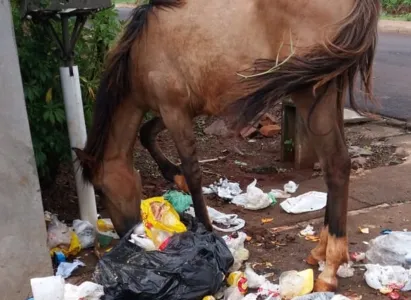 Foto de cavalo comendo lixo revolta defensores dos animais em Apucarana