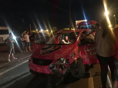 O acidente aconteceu por volta das 22 horas, a poucos metros da Universidade Estadual do Paraná (Unespar), na saída para Califórnia. De acordo com um caminhoneiro que presenciou o acidente, o motorista de um Fiat Uno com placas de Apucarana fez uma conversão em local proibido e acabou batendo contra um VW Fox, também de Apucarana.