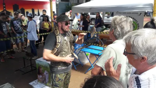 Dentre os expositores está David Peterson Turi, que cria animais exóticos há mais de 10 anos. "Desde pequeno gosto de animais diferentes, aí comecei a criar serpentes", conta.
