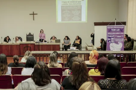 Cerca de 150 mulheres interessadas no debate sobre o fim do assédio moral da mulher no trabalho e sobre a promoção de políticas públicas de enfrentamento às violências contra a mulher, acompanharam nesta quarta-feira (21/11), na sala do tribunal do júri do Fórum Desembargador Clotário Portugal, de uma mesa redonda proposta pela Secretaria Municipal da Mulher e Assuntos da Família de Apucarana. O evento, que integra a agenda local da campanha internacional “16 dias de ativismo pelo fim da violência contra a mulher”, foi coordenado pela secretária da Mulher, Denise Canesin Moisés Machado e teve como objetivo principal a amplificação de informações sobre direitos e garantias das mulheres no ambiente de trabalho. “A nossa secretaria tem sido protagonista dentro desta importante campanha de ativismo e, ao mesmo tempo, diariamente fomentado outras organizações a desenvolver atividades que contribuam para o fim da violência contra a mulher em todos os ambientes”, disse Denise.
