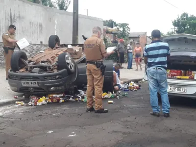 Um capotamento aconteceu no final da tarde de ontem (26) em Apucarana. O que chama atenção, é que o veículo foi furtado de um casa, no Jardim Trabalhista. O carro estava carregado com cervejas e outros objetos que também foram levados pelos criminosos.