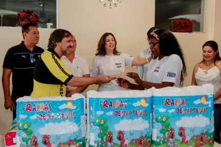 O ato da entrega dos pacotes de fraldas teve a presença do prefeito Júnior da Femac, da secretária da Mulher e Assuntos da Família Denise Canesin, da superintendente da secretaria Bete Berton, das empreendedoras Sarita Baldini e Rosana de Castro, integrantes do Moto Clube, do presidente do Lar Maurício Rawski de Paula, do coordenador Valmir Alves de Souza e da assistente social Angélica Folk Andrade.