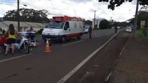 Uma jovem de 23 anos sofreu ferimentos leves após cair da moto que pilotava. O acidente aconteceu no começo da tarde deste sábado (4), na Avenida Brasil, em Apucarana.