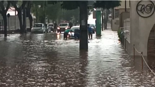 Diversos vídeos foram compartilhados nas redes sociais, relatando alagamentos em ruas do centro da cidade e também nos bairros.