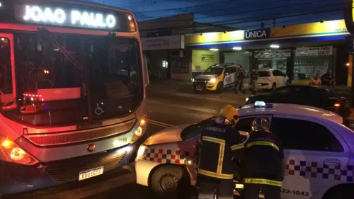 A motorista do carro, chegou a ficar presa dentro do táxi, devido a forte batida.