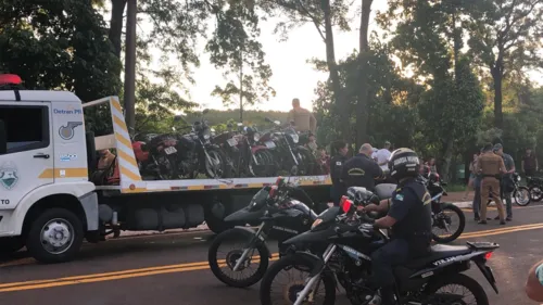 Oito motocicletas foram apreendidas e três pessoas foram detidas por desacato após uma Operação policial realizada na tarde deste domingo (19), na Avenida Jaboti, em Apucarana.