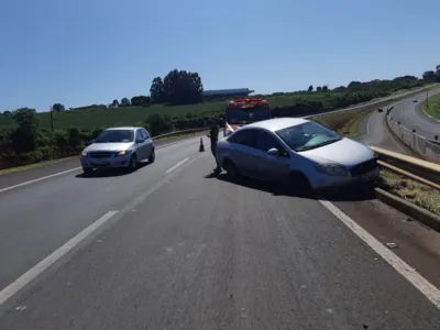 Motorista perde controle da direção e bate em defensa metálica na BR-376