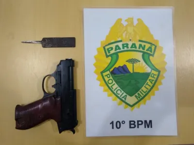 Um jovem de 18 anos foi preso com uma pistola de mentira, chave mixa e dois baseados de maconha, na quarta-feira (12), durante Operação Saturação, realizada em Apucarana. Os objetos foram encontrados na casa do suspeito, localizada na Rua Manoel Fideelis Marques, no Bairro Ouro Fino.