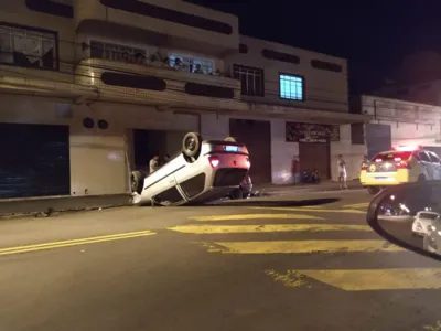 Carro capota em avenida de Apucarana na madrugada deste sábado (15)