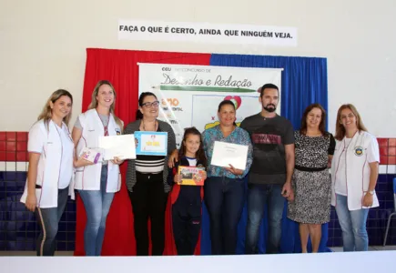 A aluna Nariany Camily Matulovic, da Escola Municipal José de Alencar, conquistou o primeiro lugar estadual no 11º Concurso de Desenho e Redação promovido pela Controladoria-Geral da União. O prêmio foi entregue à criança, na manhã de quarta-feira (4), pela coordenadora do Núcleo de Ações de Ouvidoria e Prevenção da Corrupção da CGU (NAOP-PR), Alzira Ester Angeli.