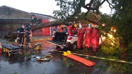 Árvore cai sobre veículo e passageiro fica preso, em Apucarana