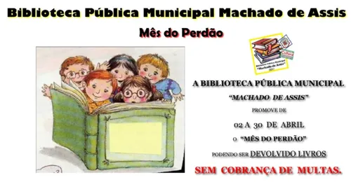 A Secretaria de Cultura, Lazer e Evenrtos (SECLE), através da Biblioteca Pública Machado de Assis, informa que dos dias 02 a 30 de abril está valendo o Mês do Perdão, para aquelas pessoas que possuem um livro do acervo da Biblioteca Pública com o prazo de devolução vencido.
