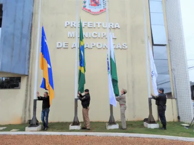 Na manhã desta segunda-feira (03) foi realizado em frente ao Paço Municipal o Hasteamento das Bandeiras, seguido da execução do Hino Nacional, Hino da Independência e Hino de Arapongas, ato que marca as comemorações da semana da Pátria.