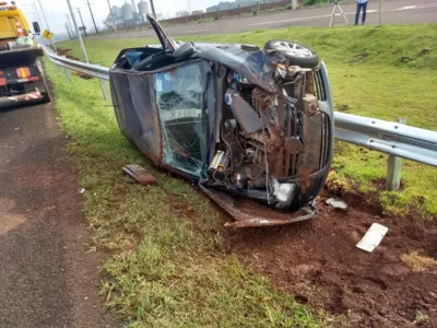 Um acidente registrado na manhã desta segunda-feira (01) na BR-369, entre Arapongas e Apucarana deixou uma pessoa ferida. O motorista de um veículo VW/Gol com placas de Mauá da Serra perdeu a direção do veículo e tombou atingindo a canaleta central da rodovia.