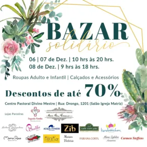 O bazar tem o apoio da Sagrada Família de Arapongas e da Associação das Damas de Caridade Maria Edna Grassano. A ação acontece no salão da Pastoral Divino Mestre, nº 1201.