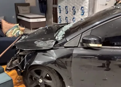 A princípio um dos carros teria cruzado a preferencial. A batida foi tão forte, que um carro capotou, e o outro veículo quebrou a vitrine de uma loja de colchões e acabou parando dentro do estabelecimento.