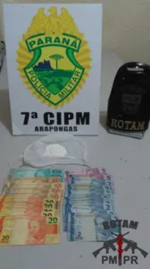O suspeito de imediato assumiu a propriedade da droga e disse que realizava a comercialização da substância. Em seu bolso foi encontrado dinheiro trocado, sendo que parte deste dinheiro provém do tráfico de drogas. O suspeito recebeu voz de prisão e foi encaminhado juntamente com o material apreendido para a delegacia da cidade.