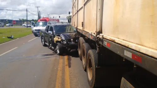 Um homem teve ferimentos leves após bater a caminhonete que dirigia contra um poste, e em seguida, invadir a pista contrária batendo contra um caminhão, na BR 369, em Arapongas.