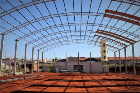 A Secretaria Municipal de Obras (Seodur) divulgou nesta sexta-feira (13), que a obra de construção do Ginásio de Esportes do Conjunto Araucária alcançou 42% de conclusão. Após os processos de fundação, entre estacas, blocos e baldrames, as equipes realizaram as instalações de estruturas metálicas, que darão sustentação a toda cobertura da quadra, revestimentos e colocação de granito, portas, janelas e demais estruturas internas do vestiário – partes já finalizadas. Nesta etapa estão previstas as instalações dos pilares da quadra que devem começar já nos próximos dias.
