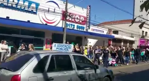 Professores de escolas municipais de Arapongas realizam manifesto na manhã deste sábado (14), na Avenida Arapongas. Os professores pedem reajuste salarial e equiparação ao piso nacional.