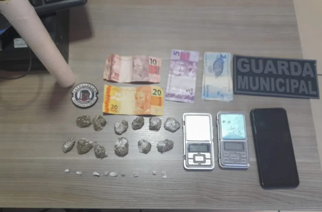 A GM chegou ao local, após receber denúncia de que havia uma pessoa traficando em frente à Escola Municipal Professora Alzira Horvatich, no Conjunto Del Condor. Após a revista pessoal e a apreensão das porções de maconha, a equipe seguiu até a casa do suspeito, que mora nas imediações, onde foram encontradas mais 9 pedras de crack escondidas dentro da geladeira, além de uma balança de precisão e um rolo de plástico filme usado para embalar os entorpecentes.