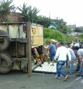 A polícia foi acionada, mas não conseguiu evitar o saque da carga por conta do grande número de pessoas que estavam no local.