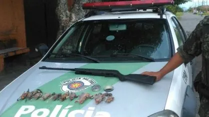 O ambulante facultou a entrada dos policiais na residência para realizar uma vistoria. Além da arma sem poder de fogo, foram encontradas 10 aves abatidas guardadas em um freezer e mais 240 quilos de carne, sem procedência, em outro compartimento.