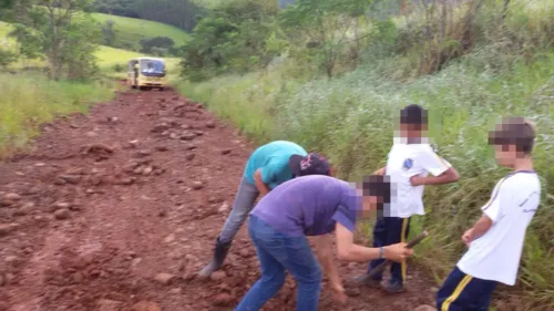 Crianças são flagradas tentando consertar estrada rural para chegar à escola