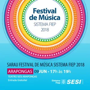 A edição 2018 do Festival de Música do Sistema Fiep tem selecionado talentos de todo o Paraná que interpretem canções sacras, regionais ou da música popular brasileira. Concorrem colaboradores das indústrias, dependentes diretos (filhos e cônjuges) e alunos Sesi, Senai e IEL. As etapas regionais de seleção acontecem em seis cidades do estado e Arapongas foi escolhida para sediar a classificatória da região Norte. O público vai poder conferir a performance musical de cantores de Apucarana, Cambé, Londrina, Santo Antônio da Platina e Mauá da Serra – além de Arapongas - no dia 9 de junho, na Arena Arte e Cultura do Sesi.