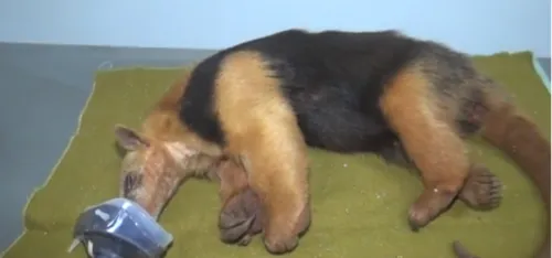 A fêmea foi anestesiada e deve passar por cirurgia. A espécie também é conhecida como tamanduá de colete.