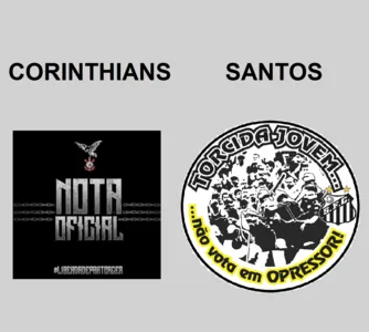 Em nota oficial, representantes da Gaviões da Fiel (torcida organizada corinthiana) publicaram uma nota nas redes sociais na noite de quinta-feira (20) se posicionando contrário às ideologias de Jair Bolsonaro (PSL). Hora depois, a Torcida Jovem do Santos, também compartilhou na mesma rede social seu posicionamento a respeito do candidato, declarando que ele não os representa. Confira: