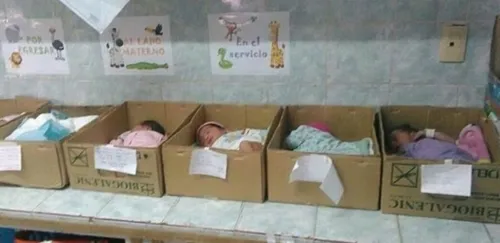 Uma foto que viralizou nas redes sociais tem comovido internautas de todos os cantos. Na imagem, que teria sido tirada de um hospital na cidade de Barcelona, no estado de Anzoátegui, na Venezuela, mostra seis bebês recém-nascidos dormindo em caixas de papelão.