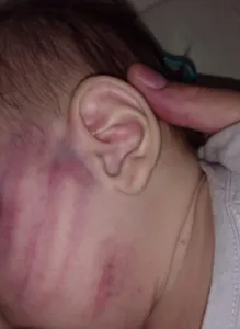 A mãe da criança estava trabalhando no momento do crime, e quando chegou em casa questionou o marido sobre os ferimentos. O rapaz mentiu para ela dizendo a mesma versão inicial que deu à polícia. A mulher quis levar a criança no hospital e lá mesmo as suspeitas de agressão foram levantadas.