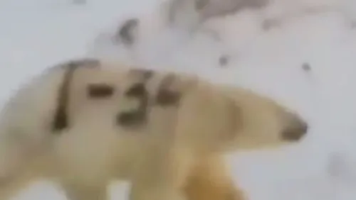 Vídeo mostra urso polar com pelagem 'pichada' com nome de tanque de guerra soviético; assista