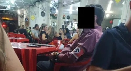 Um homem usou uma faixa da suástica, símbolo do nazismo, em um bar localizado na cidade de Unaí, no interior de Minhas Gerais. A foto foi publicada no sábado (14) no Twitter e provocou indignação entre internautas moradores da cidade.