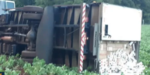 A polícia disse que recebeu informações que um caminhão carregado com cigarros, armas de fogo e drogas passaria pela PR-445. O veículo passou pela rodovia onde os policiais realizavam a fiscalização, mas não parou. Ainda segundo a PM, o motorista teria jogado o caminhão na contramão e também para cima do carro onde estavam os PMs.